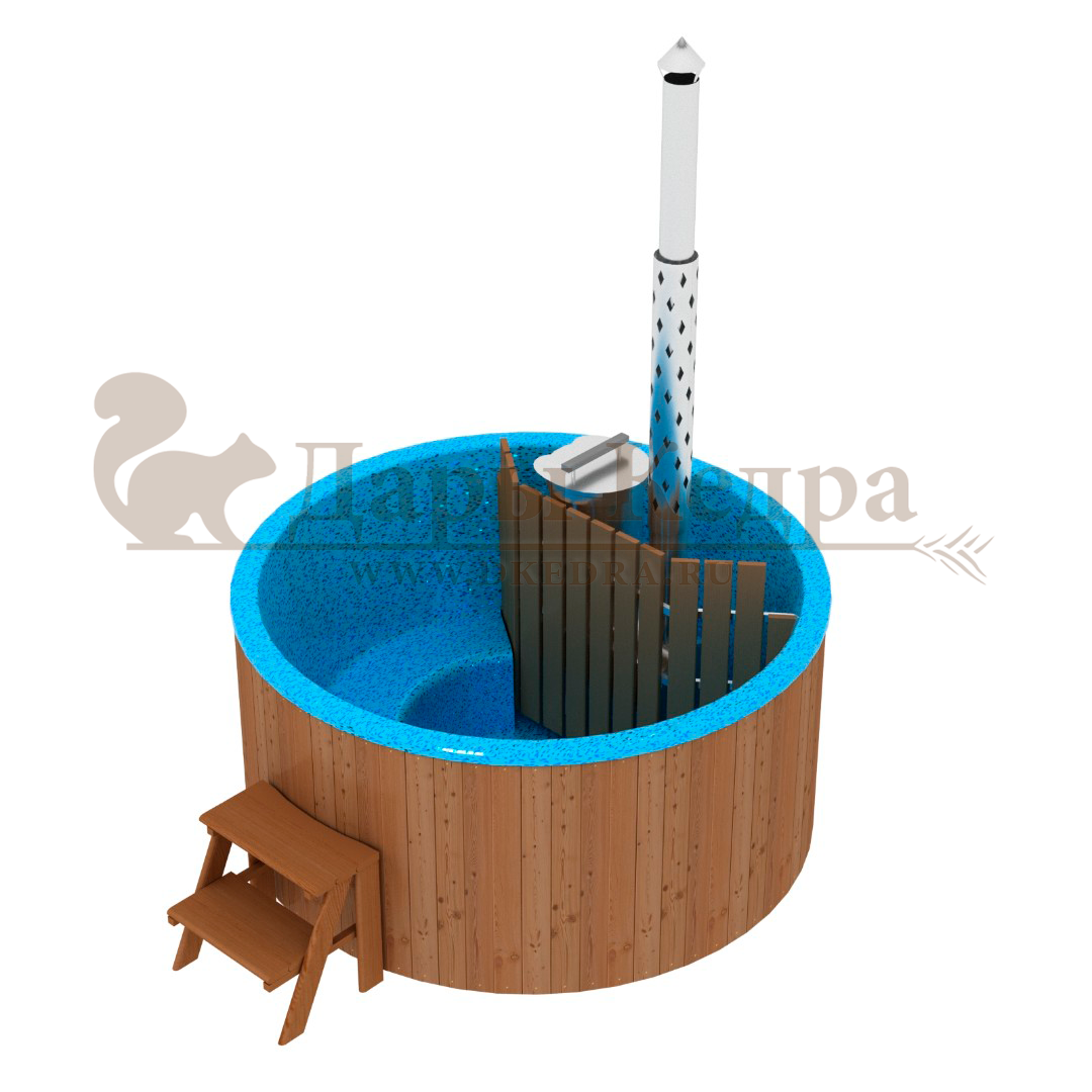 Финская круглая композитная купель с подогревом (с печкой) «Премиум 160 хот с печью 25 квт» Это уличная подогреваемая купель с круглой внутренней чашей, которая изготовлена из современного прочного и термоустойчивого материала (композита). Форма чаши обеспечивает комфортную посадку во время принятия процедур. Для удобства пользования купель оборудована приставной лестницей. Подогрев воды осуществляется внешней печью с дымоходом. Композитная вставка придает купели красивый внешний вид, продлевает срок службы и облегчает уход за изделием. Парение на свежем воздухе – это отличный способ укрепить здоровье и поддержать организм в тонусе.