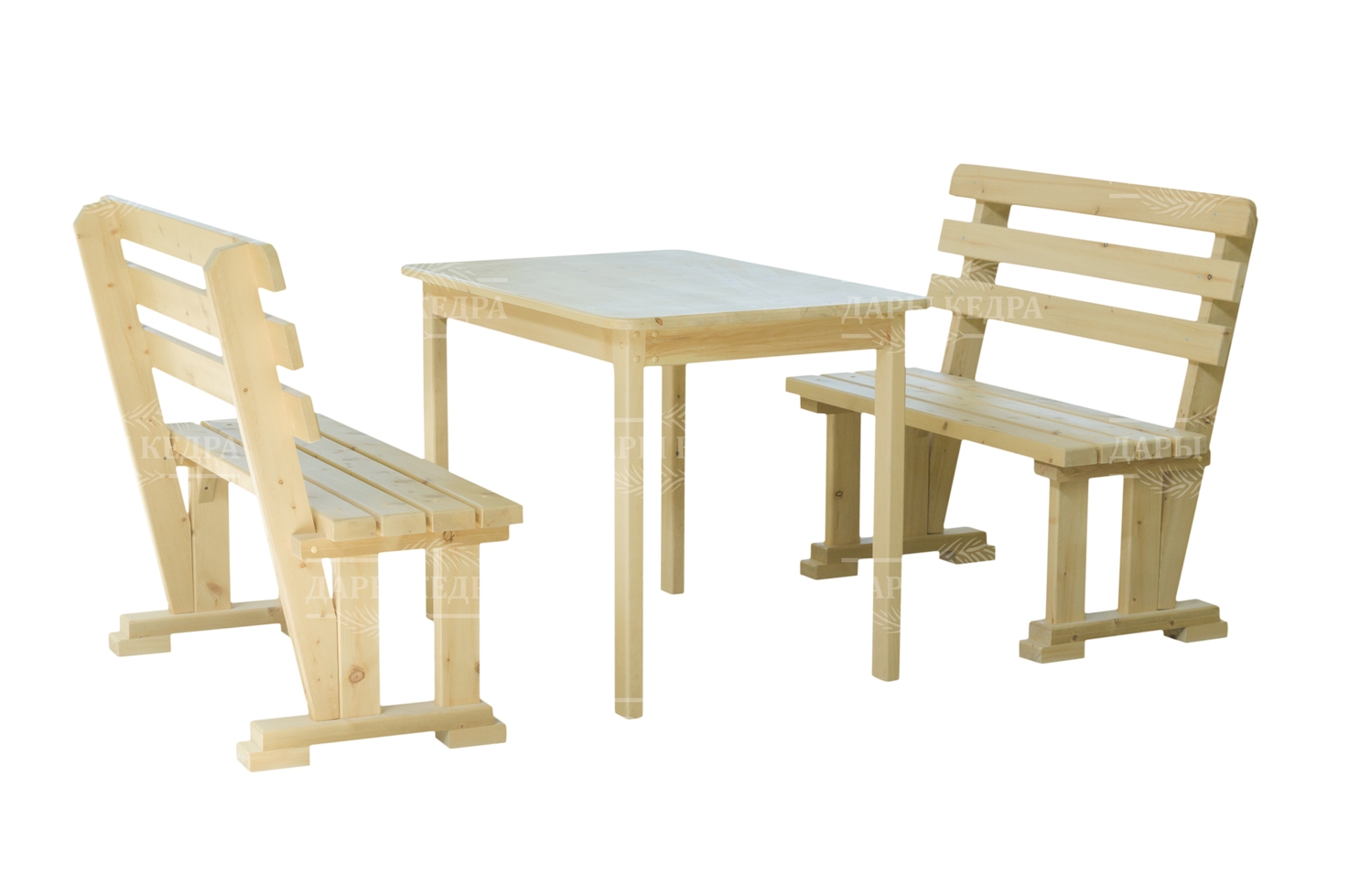 Стол с лавками Материал: алтайский кедр Длина: 1500 мм Высота стола: 780 мм Высота сиденья лавки: 400 мм Ширина столешницы: 900 мм Ширина сидений: 400 мм Толщина столешницы: 40 мм