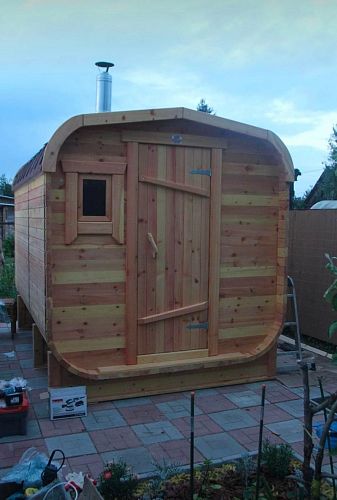Долгое время мечтала именно о такой бане. В итоге появилась возможность и мы с мужем сразу заказали нашу баню-бочку)) Доставка и работа была не быстрой, мы как раз обратились в самый разгар дачного сезона. Но решили, что подождем еще немного. Баня получилась очень комфортной и уютной. Пахнет кедром обалденно! Довольна вся семья, паримся с большим удовольствием. Рекомендую!